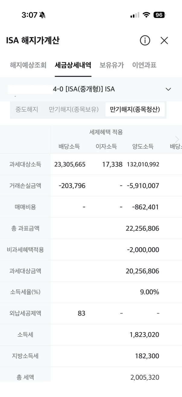 전체 배당금 3100만원은 세전금액인데 금융종합과세 노출된 일반계좌에서는 1239만원을 수령하였고 ISA계좌에서는 966만원을, 나머지는 개인연금, DC계좌에서 수령하였습니다. 내년에는 감액배당때문에 더 적은 세금과 더 많은 배당을 받을것입니다.