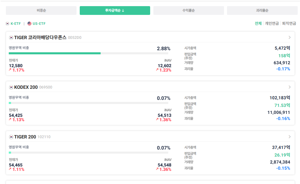 현재 영원무역을 투자하고 있는 ETF는 TIGER코리아 배당다우존스정도밖에 없다. ETF는 대량 300억정도를 가지고 있다.