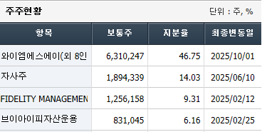 오늘 10-22일에 확인한 영원무역의 주주현황은 다음과 같다.