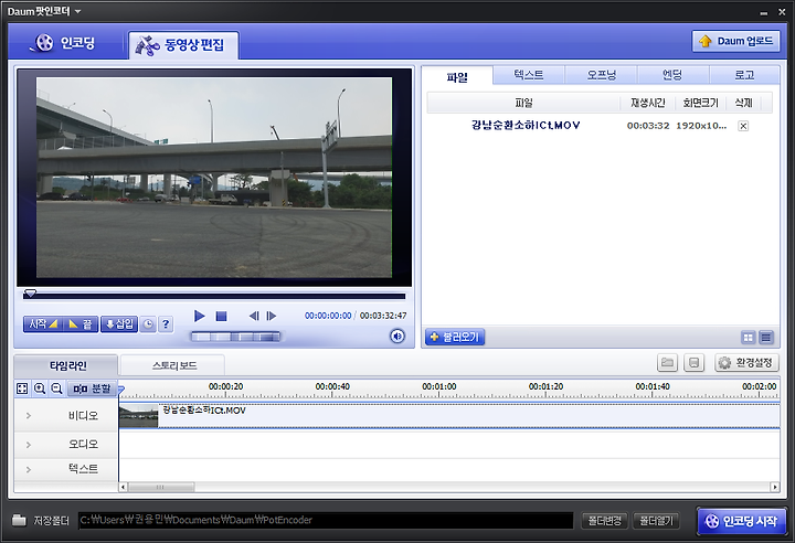 2번과 3번을 하려고 다음팟 인코더를 써봤는데 계속 프로그램이 죽고 이상동작을 해서 도저히 작업을 할 수가 없었습니다.. 팟플레이어만큼 좀 만들어주지 쫌.. ㅡㅡ;