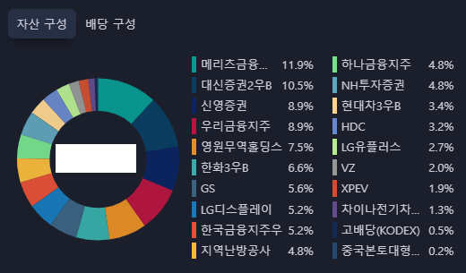 작년2020넌에 투자했던 메리츠금융지주가 올초 900원 배당을 발표할때쯤 상승할거라는 확신을 가지고 포트폴리오에 40%를 집중 투자했고 타이밍도 아주 좋아서 더블 이상의 큰 수익을 안겨주었습니다.. 분할 매도 하면서 80%정도를 처분한 상태이지만 지금도 보유 종목비중 1위를 차지하고 있는 상태입니다.. 메리츠 금융지주를 매도한 금액으로 대신증권2우B, 영원무역홀딩스, 한화3우B, GS, 한국금융지주, NH투자증권과 같은 종목을 나누어 매수는데 결과적으로는 그냥 메리츠금융지주를 계속 들고 있는것이 더 수익이 좋았겠지만 심장이 감당할 수있는 등락폭을 넘어서서 비중을 조절하게 되었습니다. 연초에도 금융지 비중이 높았는데 여전히 70%로 높은 비중을 차지하고 있습니다.. 보유종목중에 PER10을 넘어가는 종목은..